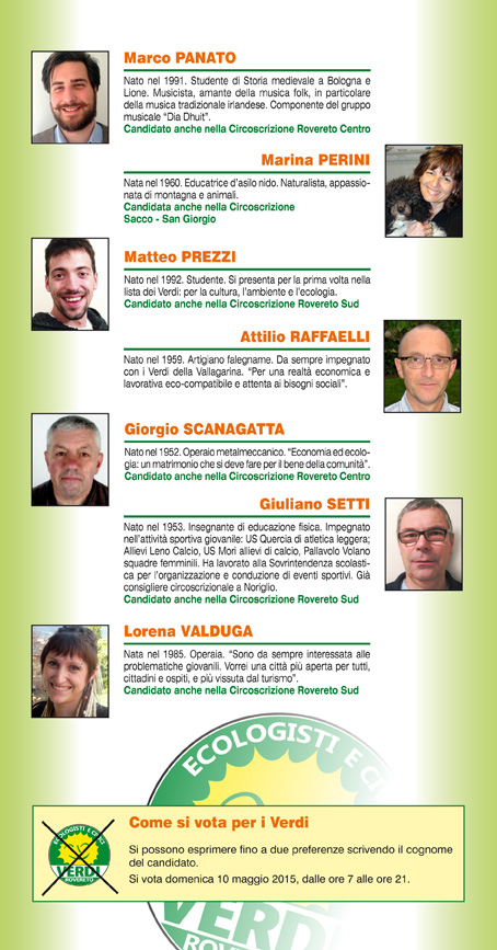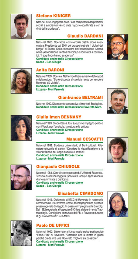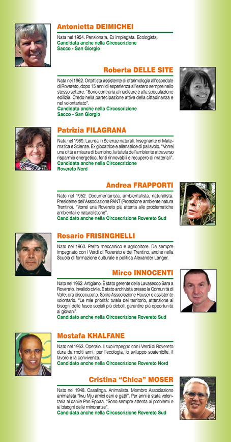 quarto gruppo di candidati   i candidati delle circoscrizioni   il programma dei Verdi   attività dei Verdi