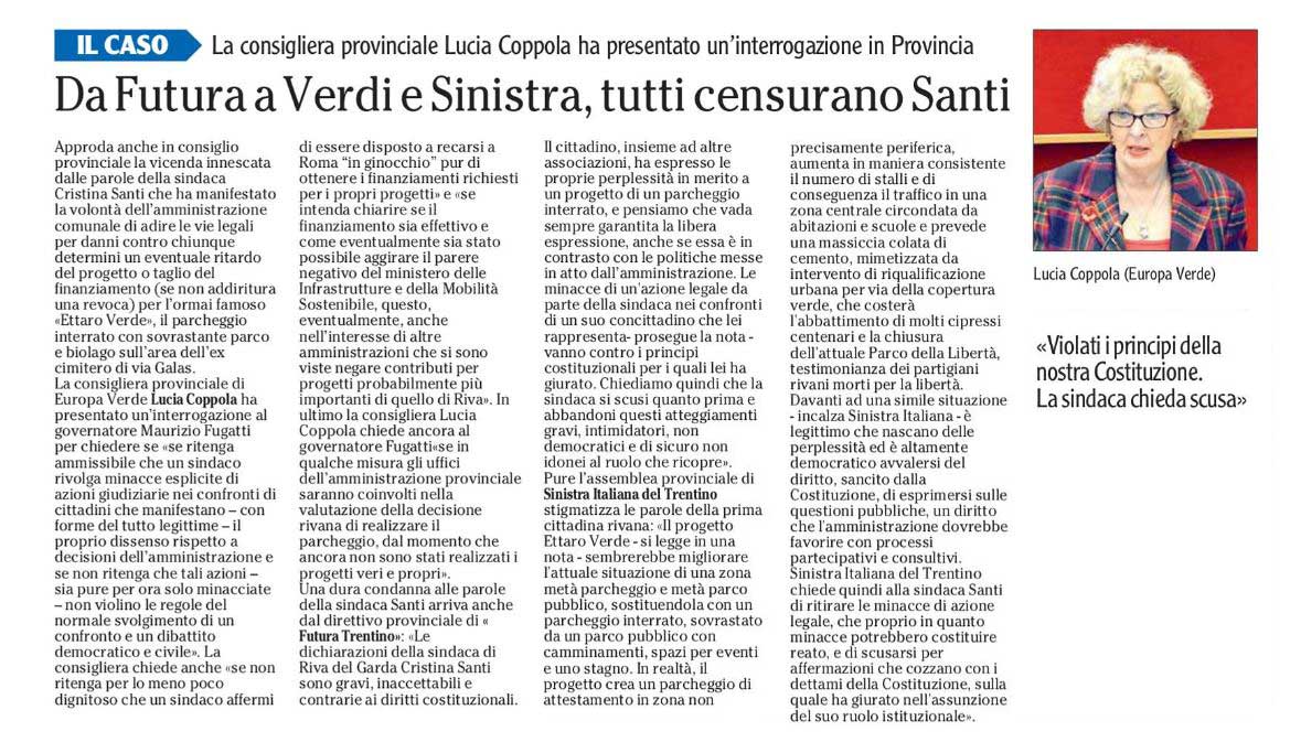 I PORTAVOCE DI EUROPA VERDE ALTO GARDA CONTRO LA SINDACA SANTI