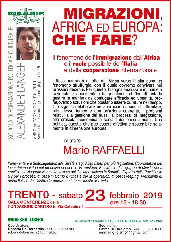 I flussi migratori in atto dall’Africa verso l’Italia sono un fenomeno strutturale, con il quale dovremo convivere nei prossimi decenni. Per questo, bisogna analizzare in maniera razionale e documentata la questione, al fine di poterla gestire in maniera da coniugare efficacia ed umanità, promuovendo soluzioni che possano essere durature nel tempo. Ciò significa elaborare un approccio capace di affrontare, allo stesso tempo e con un'azione coerente, i problemi relativi alla gestione dei flussi, ai processi di integrazione, alla crescita economica e sociale dei paesi africani. Una politica, questa, che può essere effettiva e sostenibile solamente in dimensione europea.