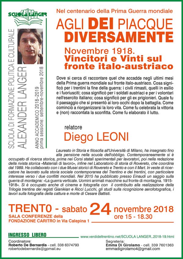 Dove si cerca di raccontare quel che accadde negli ultimi mesi della Prima guerra mondiale sul fronte italo-austriaco. Cosa significò per i trentini la fine della guerra: i civili rimasti, quelli in esilio e i fuoriusciti; cosa significò per i soldati austriaci e per i volontari nell'esercito italiano; cosa significò per gli ex prigionieri. Quale fu il paesaggio che si presentò ai loro occhi dopo la battaglia. Come cominciò a riorganizzarsi la loro vita. Come fu celebrata la vittoria e (non) raccontata la sconfitta. Come fu elaborato il lutto.